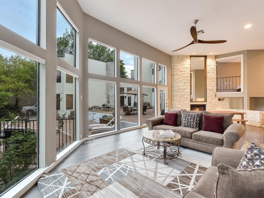 Stunning contemporary condo on the 18th fairway in The Hills of Lakeway. Imagine walking to the Country Club or riding your own golf cart. Enjoy the amazing views of waterfalls just below the 18th pin. This lock 'n leave condo has been completely updated & renovated recently. Fresh paint this week! Each bedroom has its own en-suite, 4/4 w 2 steam showers, granite, stainless appliances, wood-tile floors, soaring ceilings & walls of windows. Each window in living room has remote shades. The pool/grill is steps away. Scenic private rooftop balcony for additional outdoor entertaining. Short-Term Rental approved, all units are currently owner occupied. Guard gated community. Close proximity to schools, pools (amazing community pool renovation in progress!) , LTISD, HEB, Starbucks, BSW Hospital, restaurants, and retail. There are 3 marinas in Lakeway. 5 golf courses within 10-15 minutes. Driving range and The Academy of Golf are across the street. World of Tennis & recently updated gym are nearby. Sports memberships are optional. Mandatory social memberships include Hills/Flintrock Falls CC access for dining & social activities. The Hills has a private park. dog park, & fishing pond. The vast common areas of the Hills are lush and pristinely maintained w towering oaks, streams, ponds, and wildlife. Golf cart friendly neighborhood.