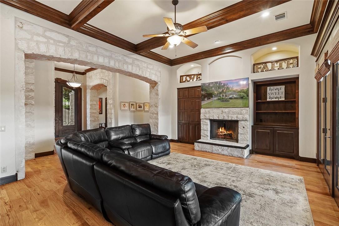 Introducing 102 Cold Water Lane on Duck Lake in the heart of Lakeway. This custom home was built as Ron Ross’ personal home and is situated on a wooded ½ acre corner lot that opens up to the water. As you arrive you will be greeted by an impressive gated courtyard. Cantera doors welcome you inside to find the foyer flanked by stone archways to the study & formal dining rooms. The center of the home is an open plan offing a family room with a fireplace centered in bookcases & art niches. French doors lead to the covered BBQ balcony perched perfectly for the amazing views. Incredible custom kitchen with breakfast room, breakfast bar & coffee bar in the walk in pantry. 2 first floor suites - owner’s suite featuring a see thru fireplace to the soaking tub, walk in shower with view, dual: vanities, linens & walk in closet plus a guest suite with a private bath. The lower floor is ready to entertain in its huge game room with wet bar & media room/5th bedroom. A covered back patio overlooks the heated pool, spa & lush back yard that gently flows down to the waterside cabana. This gorgeous residence is ready to offer the tranquil lifestyle you have been waiting for.