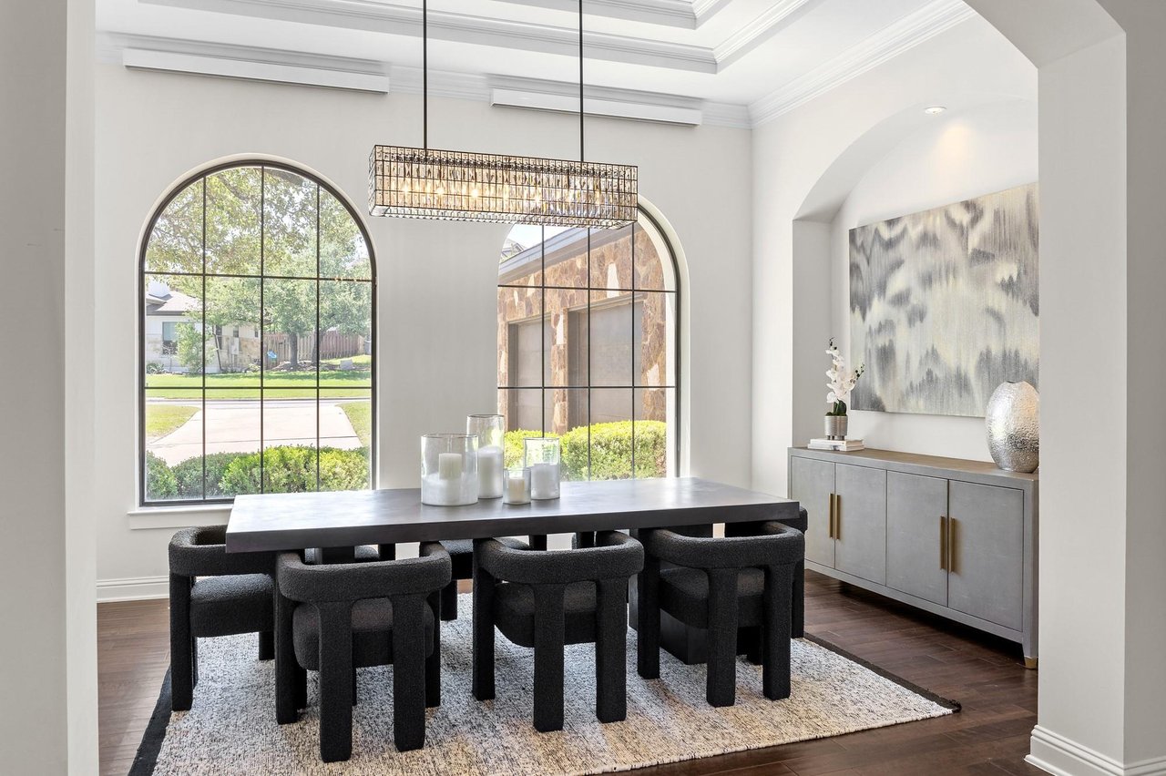 Ready for immediate move-in is this beautiful home located in the quaint community of The Preserve at Lakeway. Home features Texas sandstone and stucco exterior with elegant architectural elements. The entry opens up to a view of the living room, formal dining, kitchen, and front office all with large windows showcasing natural light and a private outdoor space and greenbelt view. High ceilings throughout give this expansive home an even larger and spacious feel. Owner’s suite provides a separate shower, soaking tub with a generous walk-in closet that conveniently connects to the utility room. Follow the floating staircase upstairs to a new media room with bunk beds, a fireplace, a sitting area and a full bath. Home has exquisite RH lighting and updated guest bathrooms. The kitchen showcases stainless kitchen appliances with a built-in wall oven and a Miele coffee machine. Beautifully landscaped grounds compliment this home with a private back yard, pool, cabana, deck, putting green, mature trees, and fully automatic irrigation system. For the workout enthusiast, enjoy the 3rd garage bay that is set up as a home gym with its own air/heat system. The home is ideally positioned for living convenience only minutes to the shopping and dining centers of Lakeway with direct access to RR 620. The City of Lakeway offers a wealth of amenities including exemplary schools, city services and government, hike and bike trails, pools with water slides, lap pool, skate park, sport court, as well as multiple lakeside parks. Multiple boating marinas and golf courses are just minutes away. Enjoy lower taxes and HOA than most communities in the area.