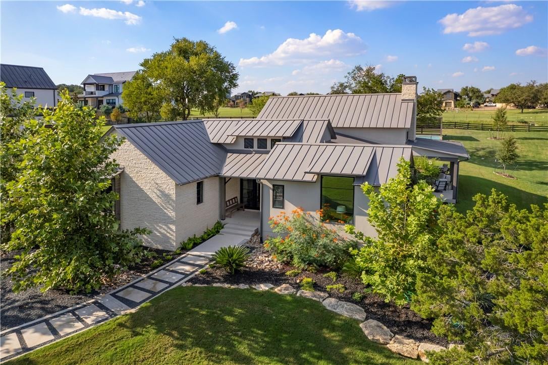 Lake Living Redefined at The Reserve at Lake Travis! Incredible opportunity to own a former 2020 HBA Parade of Homes Modern Farmhouse "Peace of Mind". Texas Hill Country blends with a modern farmhouse design to create the perfect private oasis you'll want to call home. Each detail and feature from the double-sided fireplace, dramatic high ceilings, temperature controlled wine wall, gourmet chef's kitchen with well appointed butler's pantry is built for entertaining friends and family while invoking a sense of luxurious relaxation you won't find anywhere else. This Parade Home has a large wrap around porch, detached casita/guest house with full bath and kitchenette and backs up to a large community park. Current Original Owner added over $300,000 in upgrades including an infinity edge pool, pool pavilion with seating and storage, hardscape and lush landscaping front and back, beautiful fence for the backyard with gate leading to the community park. Live your best life in this amazing home located in The Reserve at Lake Travis with great amenities and an award winning marina.
