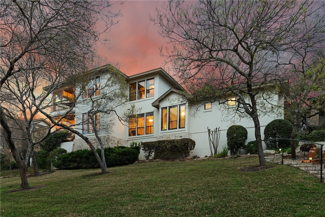 Imagine living on one of Lakeway's most coveted streets. Great curb appeal & partial views of Lake Travis. See documents w recent upgrades. .. fresh paint inside/out(elastomeric), frameless shower door, recent hot water heater, water filtration, carpet/wood floors, new light fixtures in kitchen/living/dining/bath. Recent 5 ton 16 Seer Rheem A/C, recent roof. W/ D, 2 refrigerators, hot tub, outdoor grill, outdoor heater, mounted TV's all CONVEY. Some furnishings available. Incredible value for 3414 sf. ,4/4. Sprinkler Sys:Yes